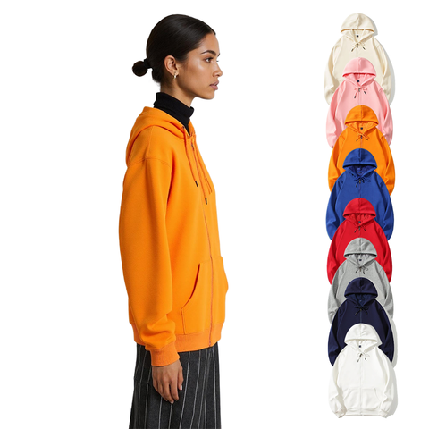 OEM Unisex kapüşonlu Sweatshirt % 45% pamuk % 55% polyester hissediyorum fermuar enzim yıkama ile CVC polar özel nakış tulum Hoodie